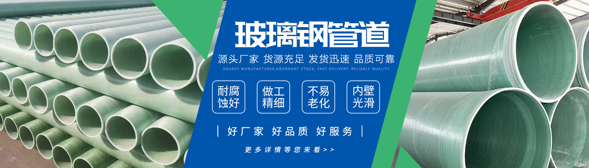 耐腐蚀性好,对水质无影响。玻璃钢管道能抵抗酸、碱、盐、海水、未经处理的污水、腐蚀性土壤或地下水及众多化学流体的侵蚀。