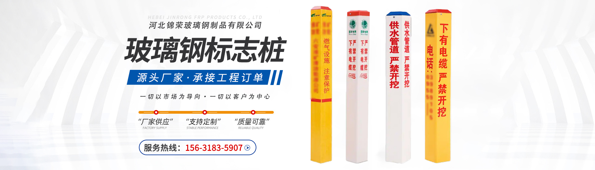 河北锦荣玻璃钢制品有限公司,一家专注于玻璃钢(FRP,即纤维增强塑料)主营业务: 生产各种玻璃钢制品,主要包括 玻璃钢盖板,玻璃钢管道,玻璃钢格栅,玻璃钢标志桩,玻璃钢阀门,玻璃钢管件,玻璃钢圆管,玻璃钢方管,玻璃钢净化塔,玻璃钢生物除臭箱,玻璃钢化粪池以及按客户需求定制的各种异形玻璃钢产品。生产、销售与服务的专 业企业。凭借扎实的工艺技术、可靠的产品质量和完善的服务体系,在环保、化工、能源、水处理等多个行业领域建立了良好的声誉。